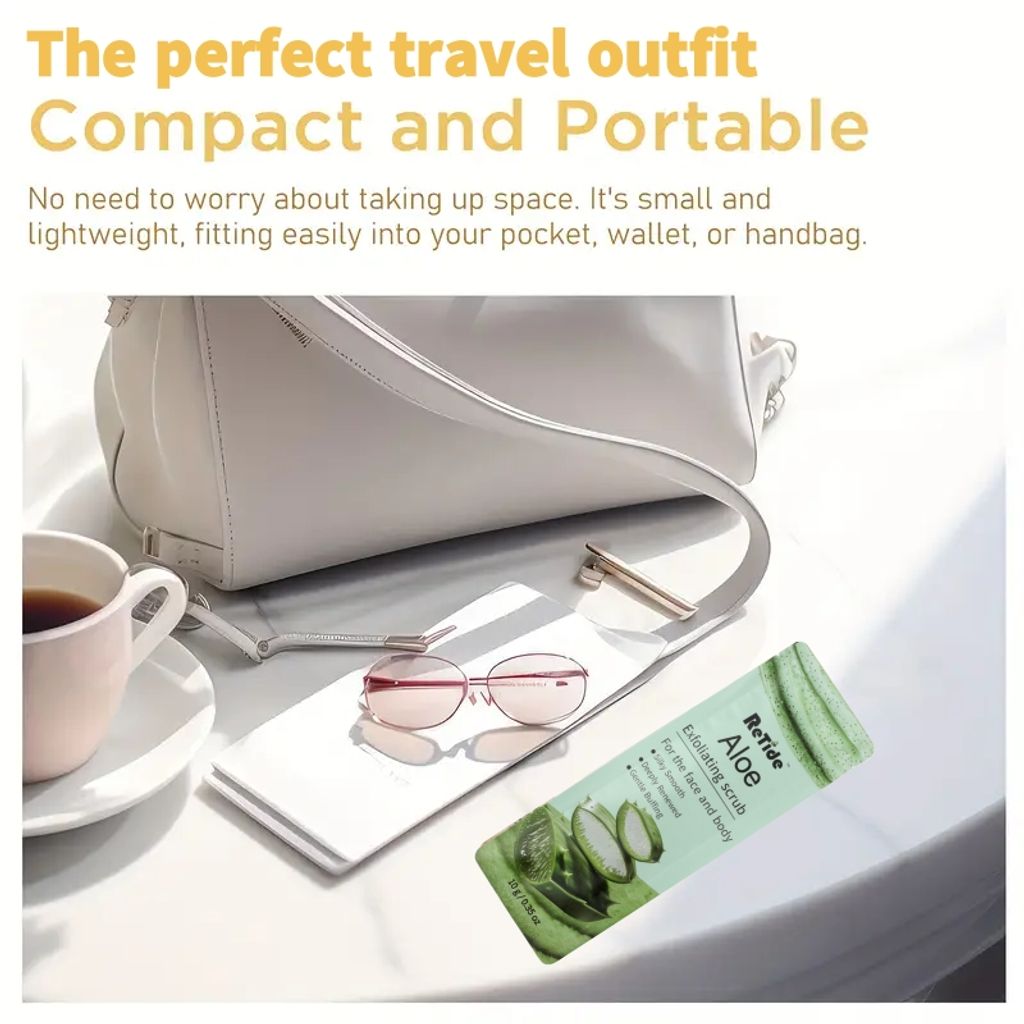 • 35 single-use aloe-infused exfoliating scrub packets – hygienic, travel-friendly & convenient.