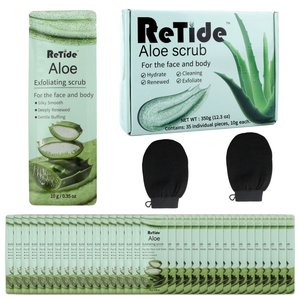 ReTide Aloe Vera Body Scrub Gift Set – 35 Single-Use Packets & 2 Exfoliating Gloves