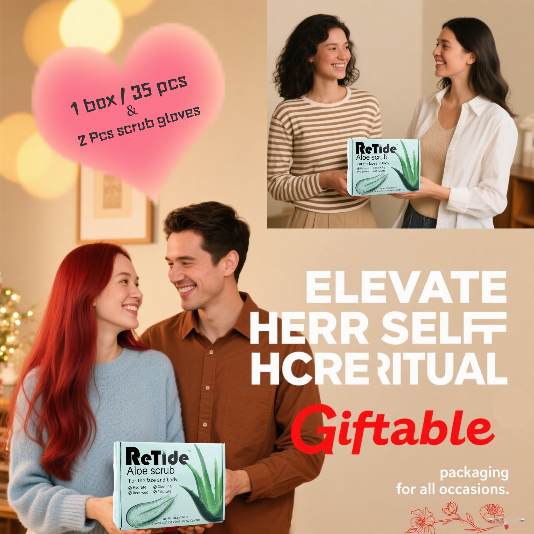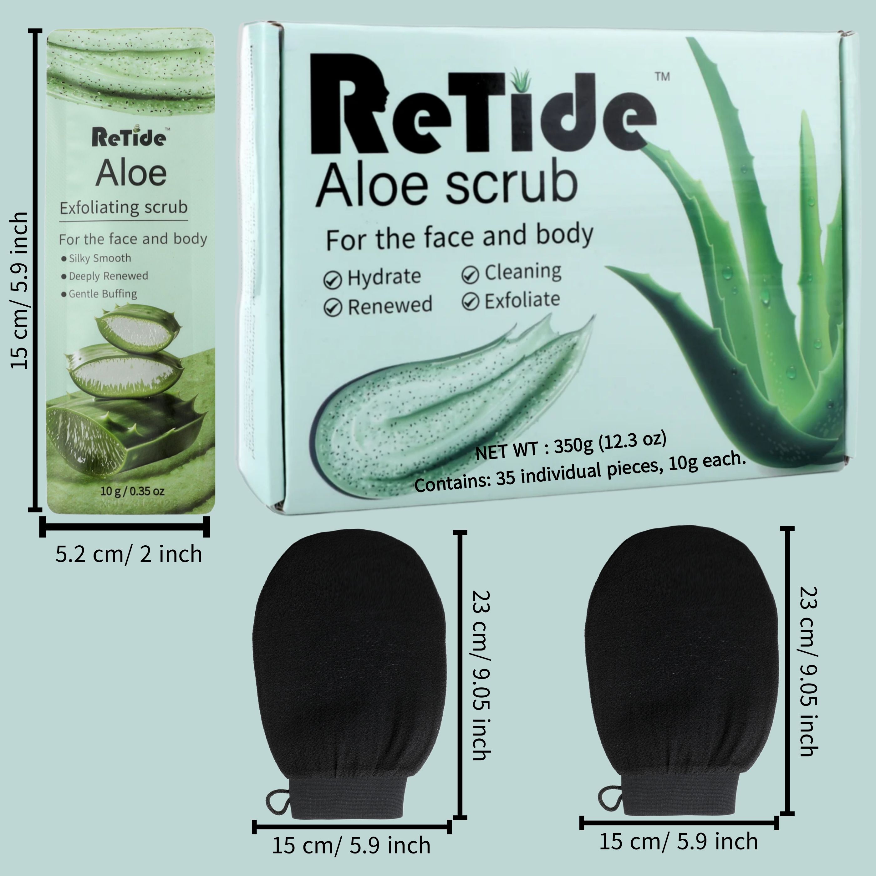 ReTide Aloe Vera Body Scrub Gift Set – 35 Single-Use Packets & 2 Exfoliating Gloves | Deep Cleansing & Hydrating Spa Gift for Women