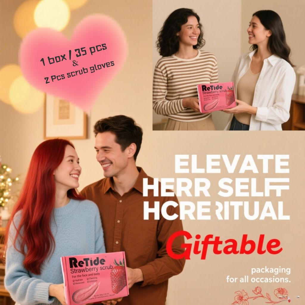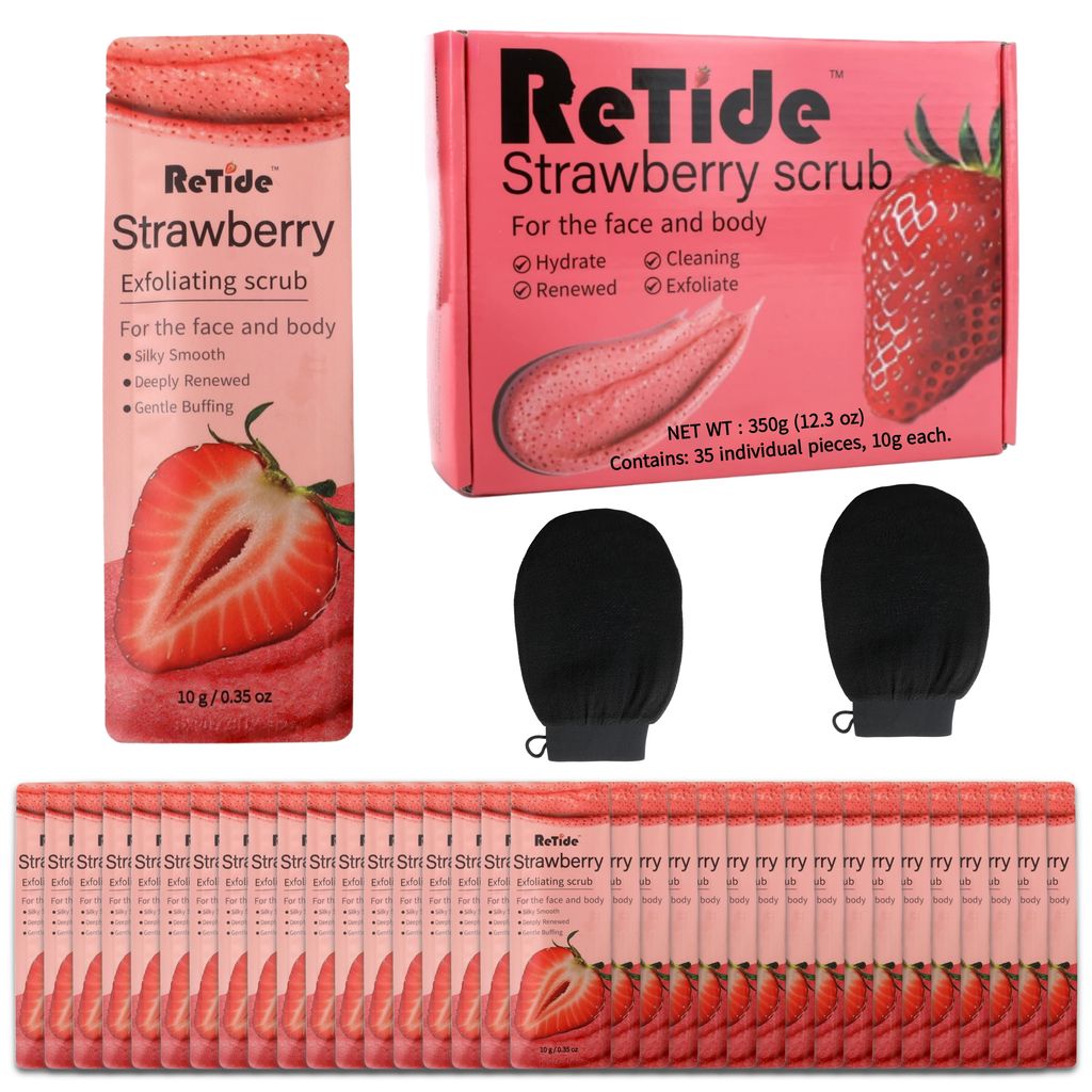 Strawberry Body Scrub Gift Set - 35 Packets & 2 Pcs Exfoliating Gloves,Exfoliating & Moisturizing Sugar Scrub for Face & Body, Self Care Gifts for Women